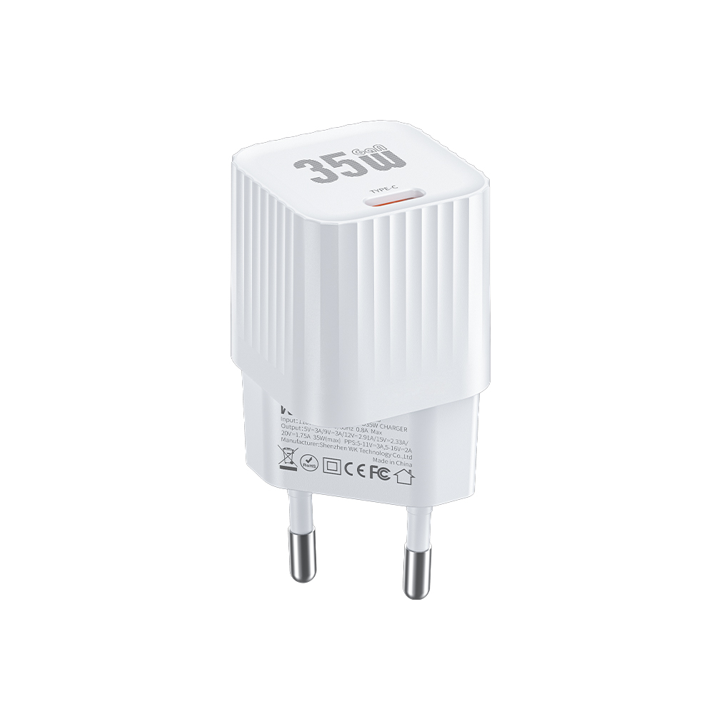 The WK WP-U13 GaN PD 35W Single-Port Wall Charger (White) is built to match a fast-paced lifestyle, delivering powerful charging in a compact and elegant form. Its minimalist geometric design fits seamlessly into any modern environment, while the mini-sized body saves space and makes it easy to carry.