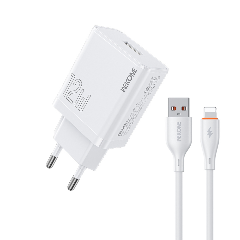 The WEKOME WP-U76 12W charger supports the Quick Charge 3.0 (QC3) protocol for faster and more efficient charging of compatible devices, while its compact design and built-in safety protections ensure reliable everyday use. A Lightning cable is included in the package, offering a complete and ready-to-use charging solution without the need for additional accessories.
